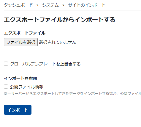 そして、インポート画面で何もファイルを選択せずにそのまま「インポート」ボタンを押します。