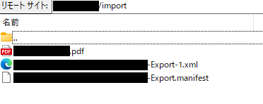 「エクスポートファイル一式」とありますが、最初はエクスポートしたさいに圧縮されたファイルでよいのかと思いましたが反応がなく試した結果、ファイル(画像・PDF・Export.manifest・Export-1.xml)をそのままimportフォルダにアップでした。(ちゃんと上記の案内文章を読んでなかった)